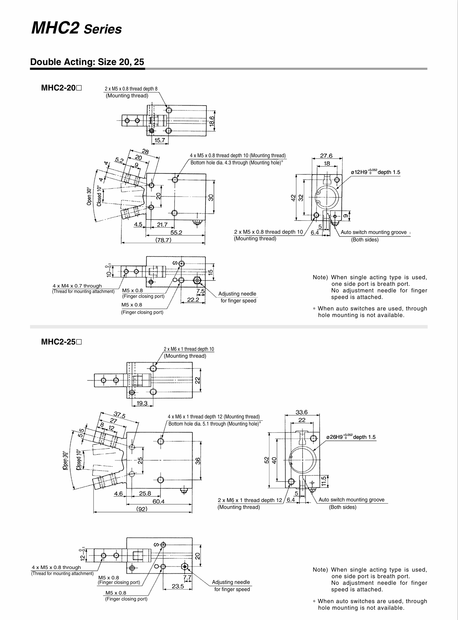 | Single acting | 0.25 to 0.6MPa | |